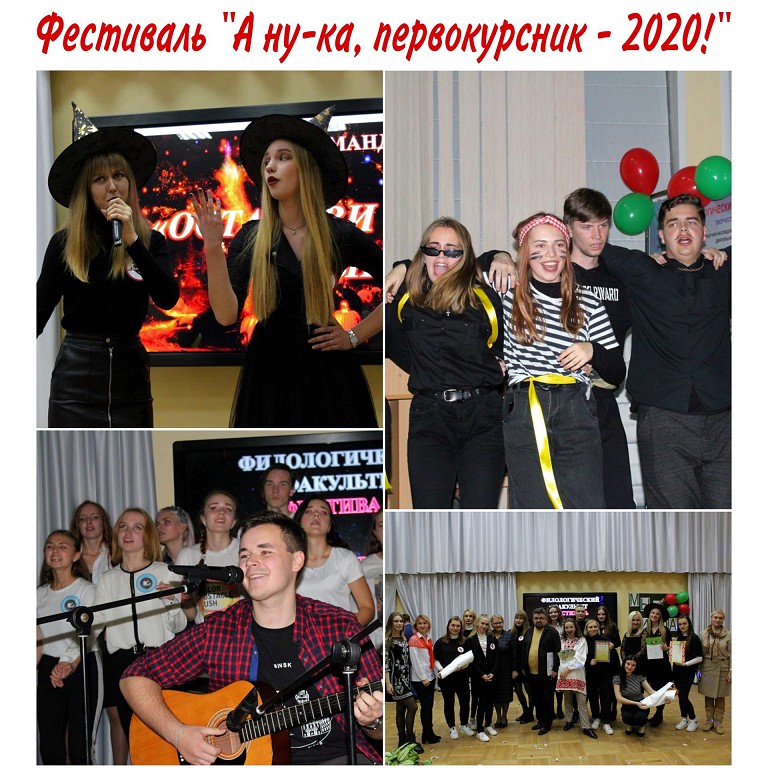 28.10.2020 на филологическом факультете состоялся фестиваль студенческих талантов «А ну-ка, первокурсник – 2020!». На сцене выступили первокурсники всех специальностей филологического факультета: команды «LitGANG» (спец. «Русский язык и литература. Иностранный язык (английский)»), «Неудержимые» (спец. «История и обществоведческие дисциплины»), «Останови музыку» (спец. «Иностранные языки (английский, немецкий)», «Иностранные языки (немецкий, английский)».