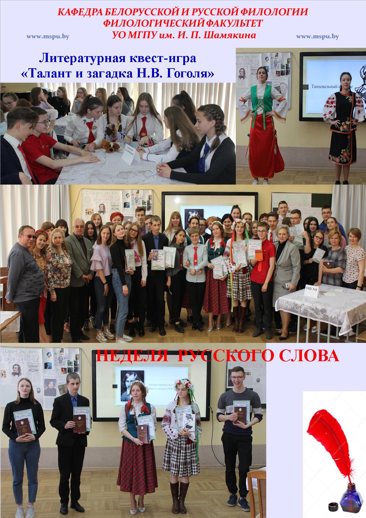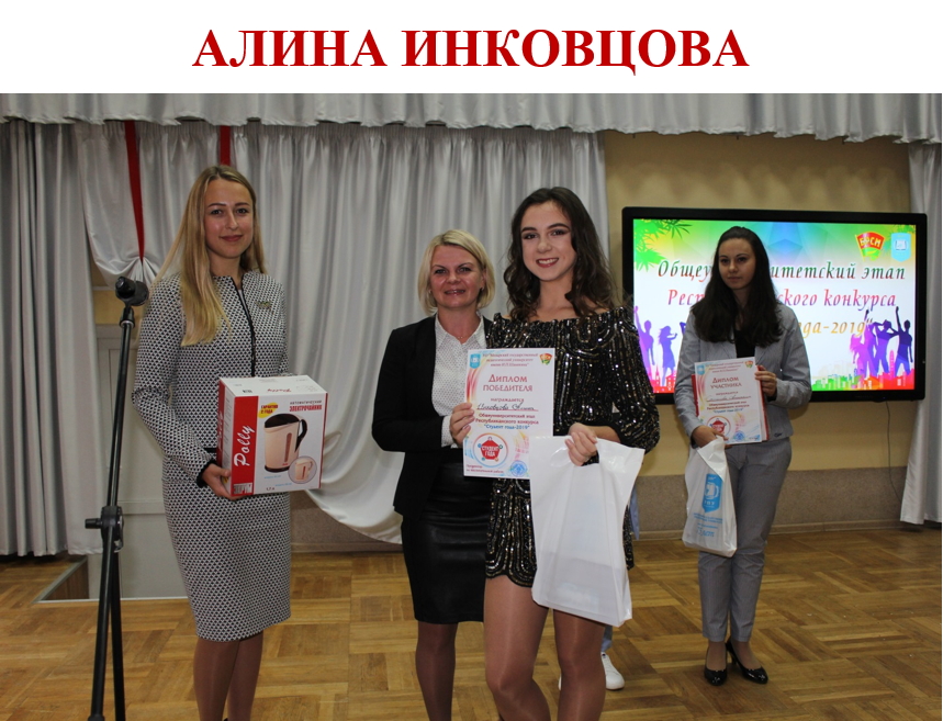 Наш университет в номинации «Перелистывая страницы семейного альбома» представляла студентка 3 курса филологического факультета Виктория Старжинская (научный руководитель: Т.Н. Сыманович, декан филологического факультета). Работа была отмечена Дипломом II степени.