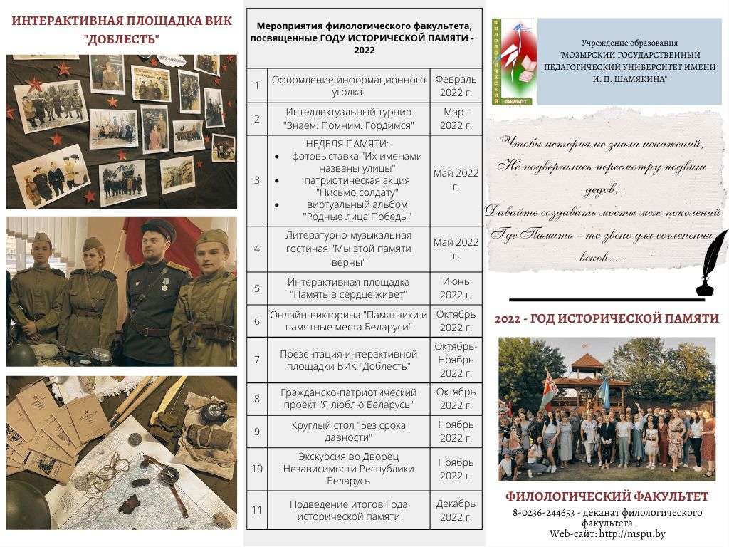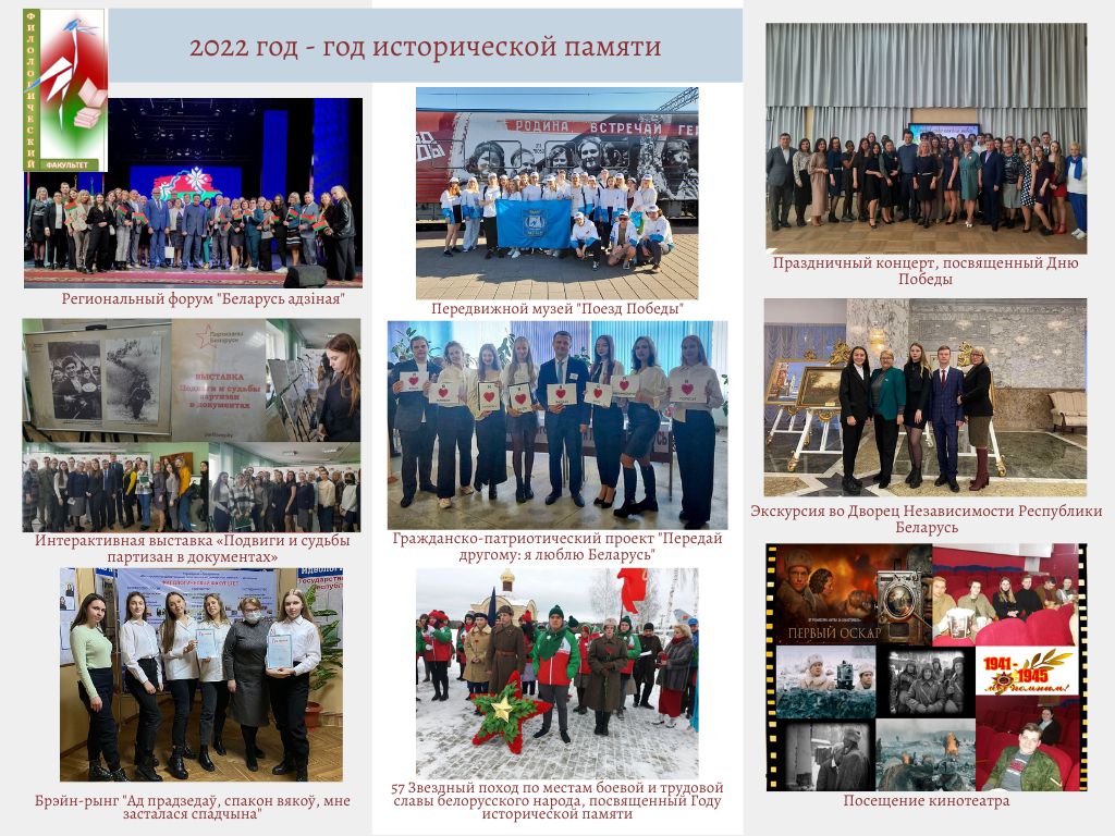 26 июня 2025 года на базе филологического факультета проведен круглый стол «ДОРОГАМИ ПОБЕДЫ»>, приуроченный к 81 годовщине операции «Багратион» (в рамках реализации проекта «Мы этой памяти верны!», посвященного 80-летию Великой Победы).