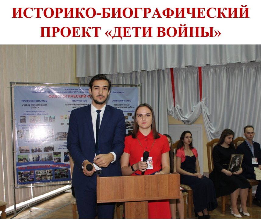 Историко-биографический проект «Дети войны» награждён Дипломом I степени этого престижного Форума! Работа студентов филологического факультета получила высшую оценку жюри в номинации «Лучшая научно-исследовательская работа». Научный руководитель проекта: Т.Н. Сыманович, декан филологического факультета, кандидат педагогических наук.