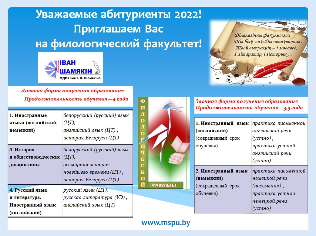 Приглашаем Вас на филологический факультет!